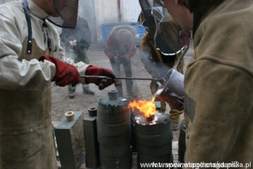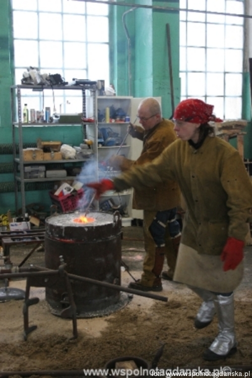 Od 16 do 26 lutego w godz. 13-18 w Obywatelskim Centrum Sztuki i Edukacji "Elbląska 66" odbywały się zamknięte warsztaty odlewnicze dla studentów Akademii Sztuk Pięknych w Gdańsku. Zajęcia prowadził Amerykanin Rick Batten, specjalizujący się w realizacji odlewów artystycznych. Inicjatorem i konsultantem warsztatów był prof. Jan Szczypka z Wydziału Rzeźby ASP w Gdańsku. W sumie około 10 studentów wykonało modele ze styropianu, które potem były odlewane w aluminium. 26 lutego, w czwartek, w ostatnim dniu warsztatów można było zobaczyć efektowny proces wytopu prac. Fot: Tramway